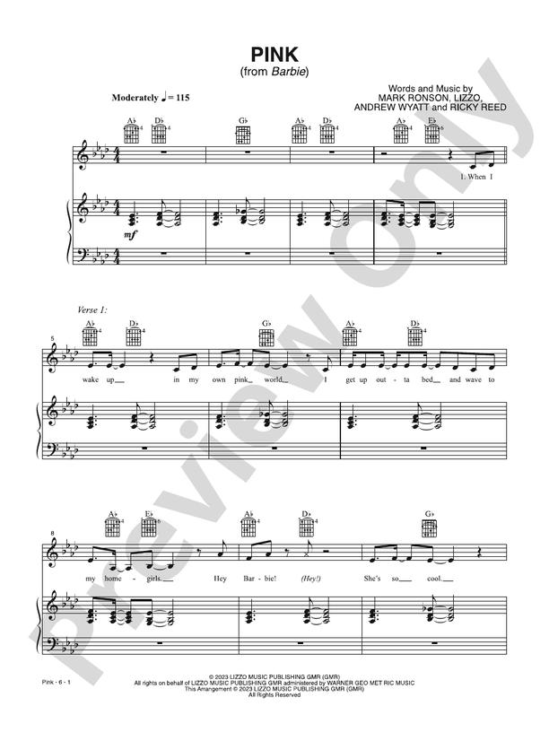 Composer: Andrew Wyatt, Lizzo, Mark Ronson, Ricky ReedArranger: Instrumentation: PVGGrade: Publisher: Alfred MusicPage Count: 6Format: Digital PDF