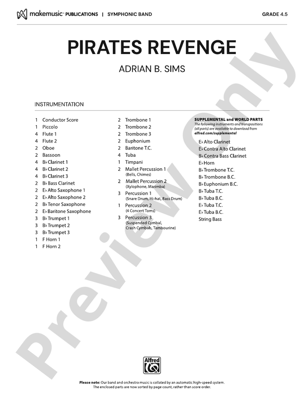 Embark on a seaward journey beginning with the dawn of a pirate expedition! From singing sea chanteys to entering battles at sea, Pirates Revenge includes swashbuckling melodies that seek thrill and mischief along the way. A fantastic composition for accomplished groups, this work by Adrian B. Sims will keep audiences on the edge of their seats! (4:45)