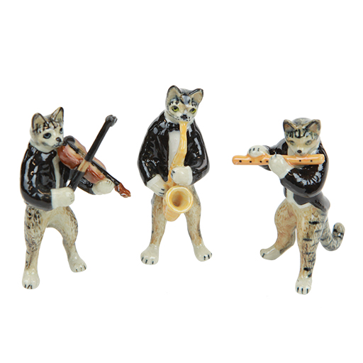 Give the perfect gift for both animal and music lovers combined with this band of cats playing instruments. Part of a series showcasing animals playing instruments, the figurines are made of porcelain, with the pig band featuring a violin, flute and saxophone. Each figurine offers exceptional accuracy, quality and finish. Beautifully coloured, this figurine set really is the ideal gift for both animal and music lovers.
