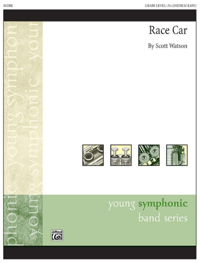 The skill and thrill of auto racing is captured musically in this piece via its infectious groove and exciting syncopations. Written in one continuous movement, its sections will help you imagine sitting behind the wheel of a powerful and agile racing machine over the course of a breathtaking speed contest. Students performing this piece will enjoy discovering that the palindromic nature of the piece, including the title, "Race Car" (which reads the same forwards and backwards), a pervasive syncopated ostinato rhythm, A-B-A form, and a fugato section at the center of the work (Pit Stop), in which virtually each instrumental part is a palindrome! (3:25)
