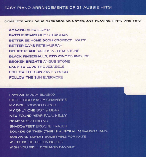 + Amazing (Alex Lloyd) + Better Be Home Soon (Crowded House) + Big Jet Plane (Angus & Julia Stone) + Black Fingernails, Red Wine (Eskimo Joe) + Broken Brights (Angus Stone) + I Awake (Sarah Blasco) + Little Bird (Casey Chambers) + My Girl (Hoodoo Gurus) + My Only One (Boy & Bear) + New Found Year (Paul Kelly) + Scar (Missy Higgins) + Shadowfeet (Brooke Fraser) + Sound Of Then [This Is Australia] (Ganggajang) + Survival Expert (Something For Kate) + White Noise (The Living End) + Wish You Well (Bernard Fanning)