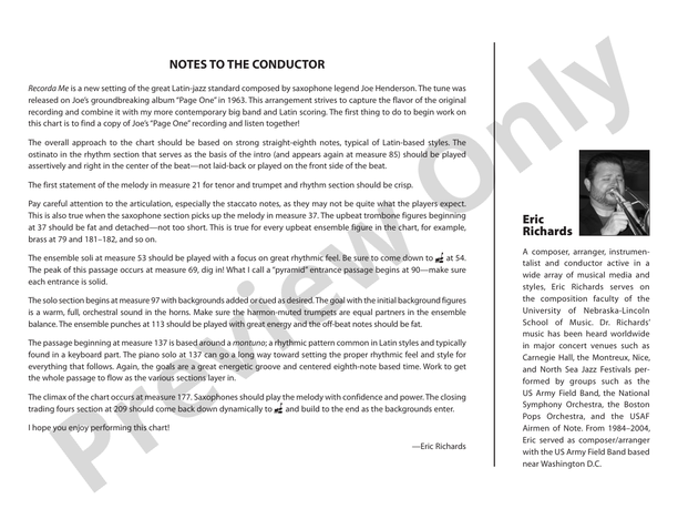 A show-stopping Latin tune! Latin jazz at it's best with excitement from the first note, sax solis, a melody line by tenor and trumpet, solo space for tenor, trumpet, and trombone, lead trumpet range to written high D, and a few drum solos. Great tune by a tenor sax legend.