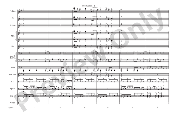 Led Zeppelin's hard-driving rocker really shines in the capable arranging hands of Roland Barrett. This is "in-your-face" writing that will rock the stands! (2:00)