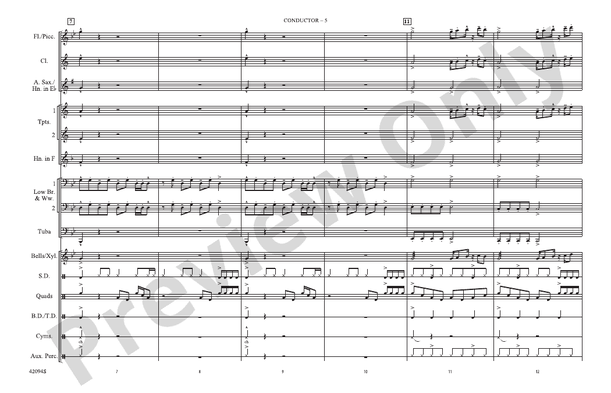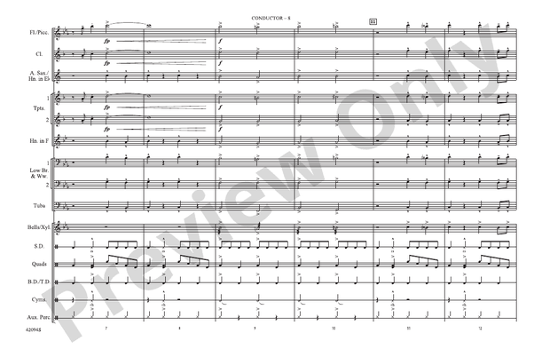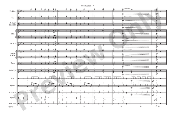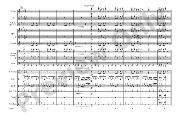 Here is another awesome set of four short, timeout-length charts that will really get the crowd going this year. All of the titles are proven winners. Doug Adams has arranged these using lots of block scoring, making even the smallest bands sound great! (2:30)