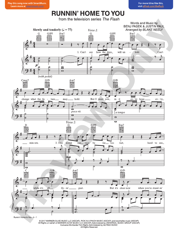 Written by award-winning songwriters Benj Pasek and Justin Paul (La La Land), Runnin' Home to You was composed exclusively for the CW Network's special superhero musical crossover episode, "Duet," featuring The Flash and Supergirl. This Original Sheet Music Edition presents a piano/vocal/guitar arrangement of the song, complete with original artwork and lyrics.