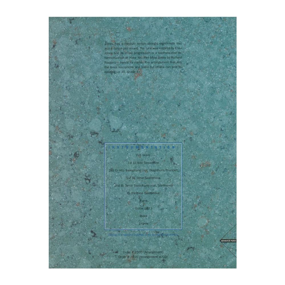 Medium tempo straight eighth-note feel with a "today" jazz sound. The tune features the tenor and piano and was inspired by Elvin Jones and its chord progression is a sophisticated re-harmonization of "Have You Met Miss Jones" hence its name. Medium advanced.
