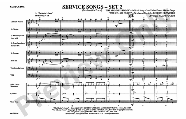 Set 2 of our best-known service songs. This set includes "The Marines' Hymn" and "The U.S. Air Force Song." These are easy, straight-forward arrangements which will be usable year after year. (1:25)