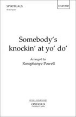 for SA and piano This thoughtful arrangement of the well-known spiritual 'Somebody's knockin' at yo' do'' was originally published as part of the collection Spirituals for Upper Voices. The two vocal lines are eminently singable, making the arrangement ideal for both children's and women's choirs of all levels of experience.
