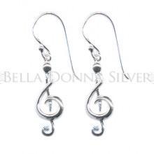 Sterling silver drop earings. Treble clef with a very curved tail