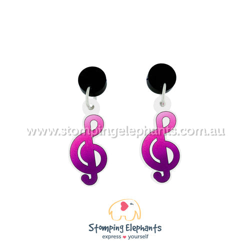 Stomping Elephant Music Drop Earrings Acrylic Pink Treble Clefs The Diva