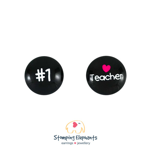 Stomping Elephant Music Stud Earrings Glass Black with Teacher and a Heart and the Number 1Teaching is a Work of Heart (copy)
