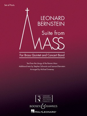 Bernstein's Mass is a monumental 90-minute work, written in 1971 for the opening of the John F. Kennedy Center for the Performing Arts inWashington, D.C. In this suite commissioned by the Canadian Brass and t he Eastman Wind Ensemble, arranger Michael Sweeney focuses on a select number of movements, often using the brass quintet to represent the vocallines found in the original. The striking and beautiful work includes < i>Alleluia, Sanctus, the well-known A Simple Song, Agnus Dei, Offertory and Almighty Father. Although scored for brass quintetand wind ensemble, ample cues are provided to allow this to be performe d by a wind ensemble or symphonic band alone. Dur: c. 14:00 (Grade 5)