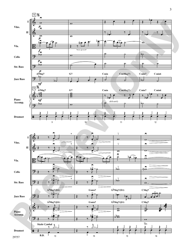 This lovely and time-tested jazz ballad will provide easy access to jazz for your students. Because it is a ballad, the string parts sound more classical, so it is an easy way to slip into a jazz style without changing traditional techniques. Written-out solos are provided, but students may improvise them instead! The piece is dedicated to legendary jazz violinist Johnny Frigo, who was featured on the initial recording. (4:00)