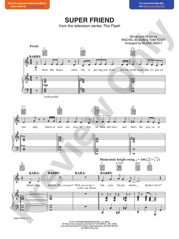Super Friend, written by Crazy Ex-Girlfriend's Rachel Bloom and Tom Root, was composed exclusively for the special The Flash-Supergirl musical crossover episode, "Duet," on the CW Network. This Original Sheet Music Edition presents a piano/vocal/guitar arrangement of the song, complete with original artwork and lyrics.