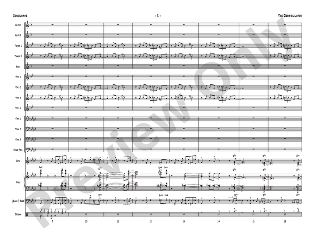 The Defibrillator is a level 3 Jazz Band Series piece designed for high school and advanced junior high school band. Full instrumentation includes 5 saxophones, 8 brass, and 4 rhythm parts. Optional parts include flute, tuba, horn in F and baritone T.C./tenor sax. Solos are written out with chord changes, the rhythm section parts suggest chord voicings and rhythms and guitar chord frames are provided to help young guitarists.