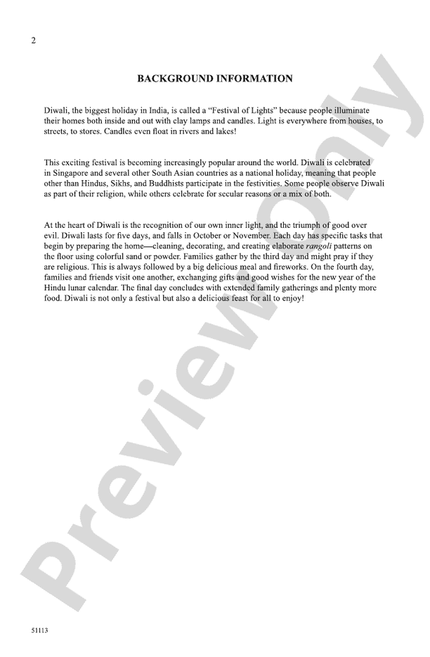 India's annual festival of lights is becoming increasingly popular around the world. This Bollywood-style original details various traditions associated with the celebration, including the food, fireworks, and colorful rangoli patterns made of sand. Plenty of unison phrases and simple call-and-response make it a joy to learn and perform. A great way to represent the diversity of your community!