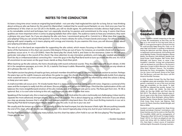 A luscious alto sax ballad at 74 BPM. A lyrical vehicle with rich harmony and textures, soaring ensemble figures, and a soli with saxes (alto 2 opt flute), trumpet 2, guitar, and piano. A brilliant chart! (2:25) This title is available in MakeMusic Cloud.