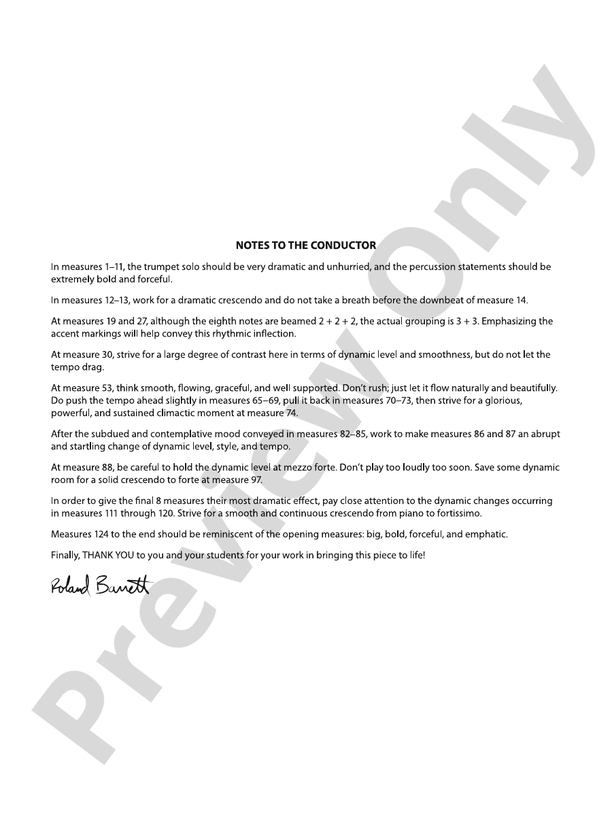 Opening with a dramatic combination of solo trumpet and powerfully emphatic percussion statements, The Second Shaman features a driving A section, a beautifully lyrical middle section, and a thrilling and affirming closing passage, complete with a climactic return of the introduction's powerful percussion declarations. Written by veteran composer Roland Barrett, this educational and entertaining piece offers wonderful teaching opportunities for your ensemble. (5:30)