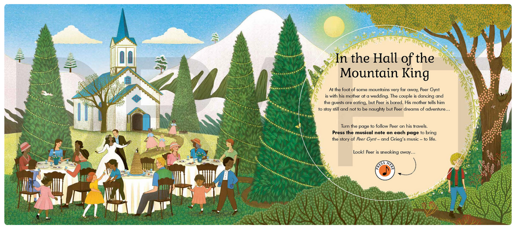 At the back of the book, find a short biography of the composer, Edvard Grieg, with details about his composition of Peer Gynt. Next to this, you can replay the musical excerpts and, for each of them, read a discussion of the instruments, rhythms and musical techniques that make them so powerful. A glossary defines musical terms.