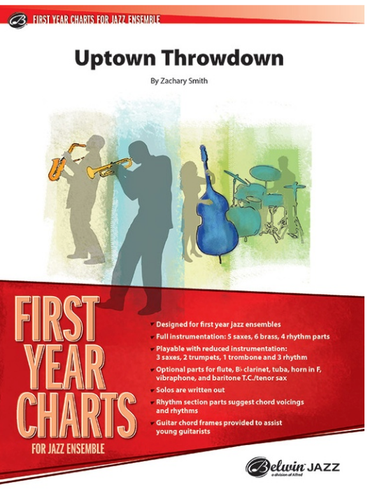 This is a very cool shuffle-swing groove by Zachary Smith is played around 140 BPM. Written solos are provided for trombone 1 and alto 1, a stop-time interlude, a big shout chorus, and an optional vocal shout-out too! Optional parts for flute, clarinet, and vibes and more. Uptown Throwdown is a powerful chart that everyone will enjoy! (4:05)