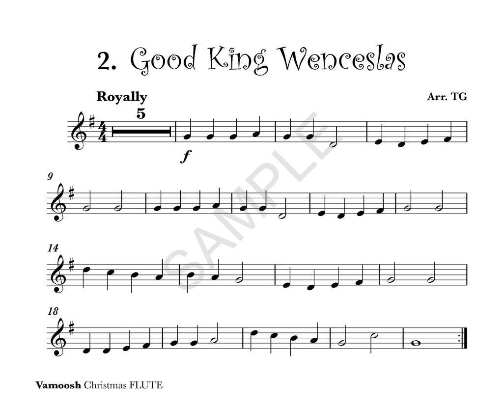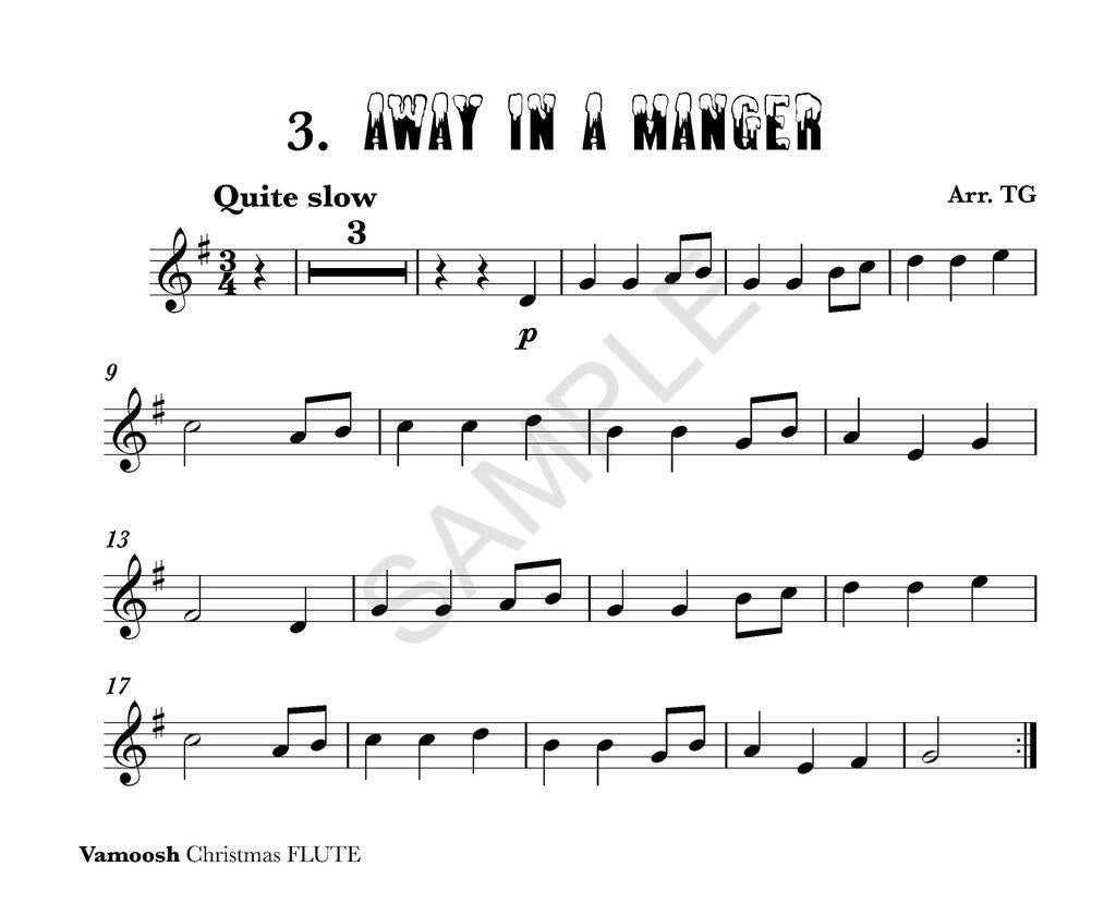 Vamoosh Christmas for young Flute players. 12 well known Christmas items arranged for Flute duo with optional accompanying backing-track or piano. Books are compatible with Vamoosh Christmas for Recorder, Violin, Viola, Cello and Double Bass so you can join friends for a Christmas feast of music making. Backing-tracks are available on many online platforms such as Spotify, iTunes, GooglePlay and YouTube. Search for Vamoosh Christmas Backing-tracks.