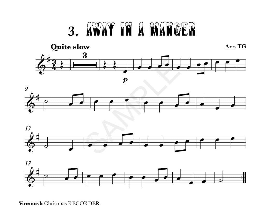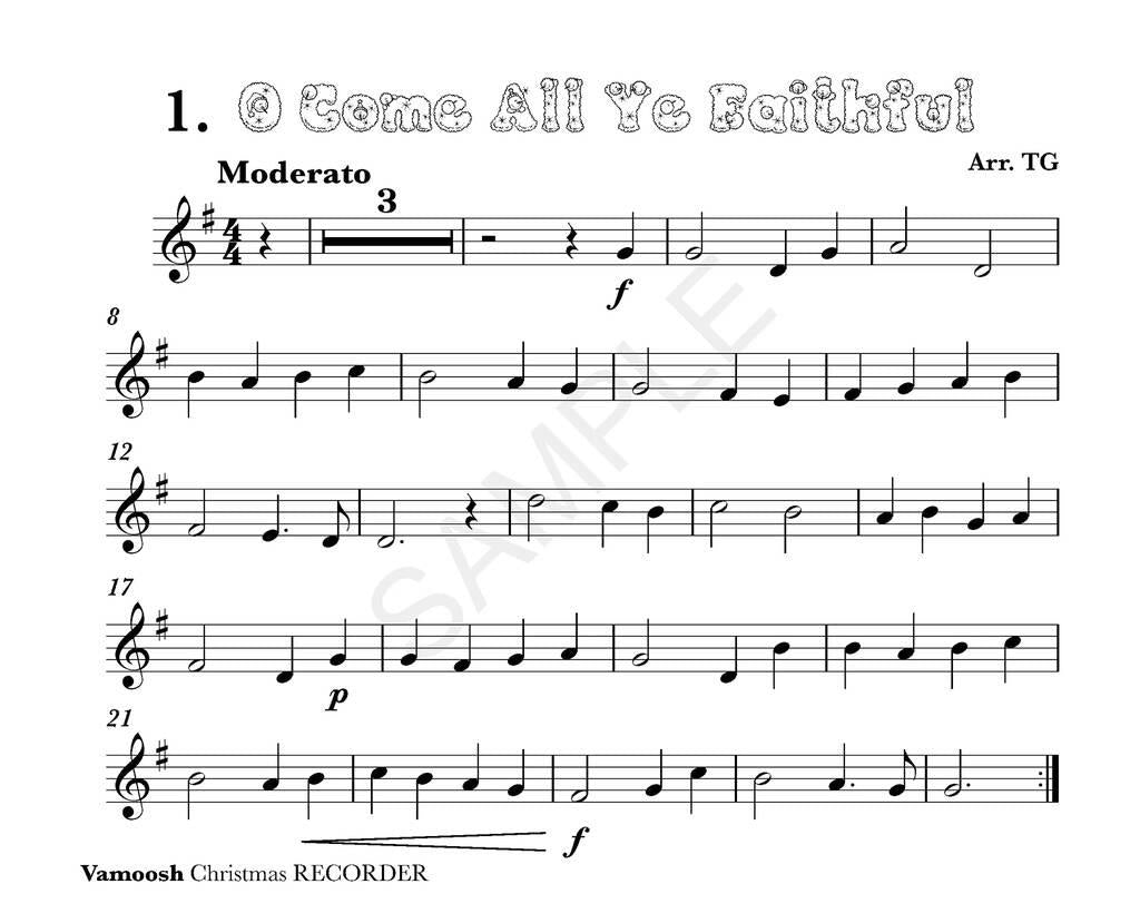 Vamoosh Christmas for young Recorder players. 12 well known Christmas items arranged for Recorder duo with optional accompanying backing-track or piano. Books are compatible with Vamoosh Christmas for Flute, Violin, Viola, Cello and Double Bass so you can join friends for a Christmas feast of music making. Backing-tracks are available on many online platforms such as Spotify, iTunes, GooglePlay and YouTube. Search for Vamoosh Christmas Backing-tracks.
