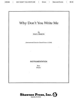 For show choir or vocal jazz ensemble, this humorous and energetic arrangement features a Louisiana Cajun groove of “Why Don't You Write Me?,” by Paul Simon. As performed by New York Voices on their 1998 album, it allows for a lot of solo lines interspersed with group vocals and includes a fun swing section as well. Fabulous! AVAILABLE: SATB, Drums/Bass