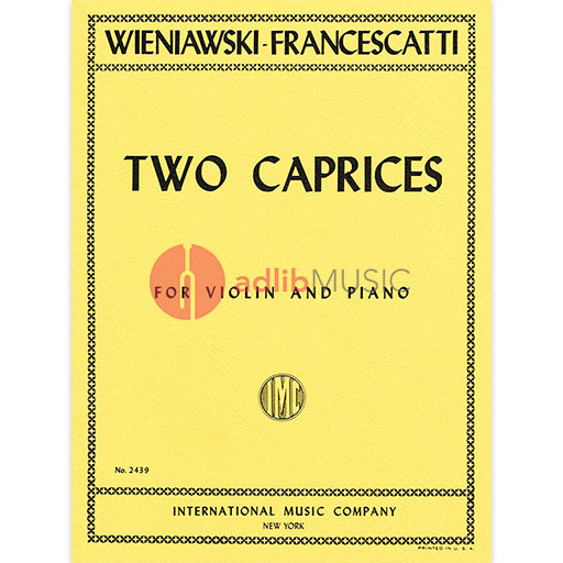 Two Caprices for Violin & Piano by Henryk (Henri) Wieniawski. Op. 18, numbers 4 & 5.