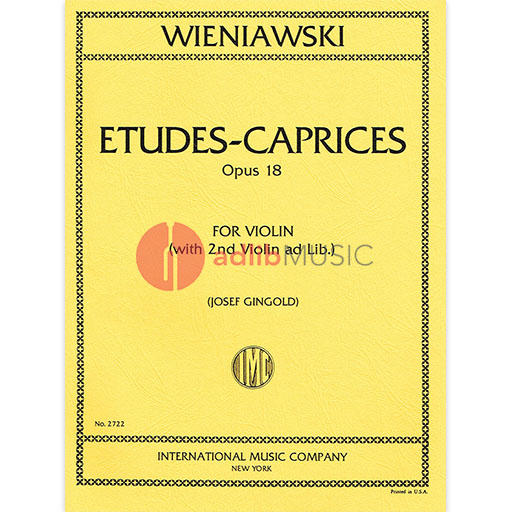 The Etudes-Caprices, Op. 18, are among Wieniawski's better known works for solo violin. Exacting and virtuosic, these brilliant pieces can simultaneously serve as technique studies for the violinist, or as spectacular performance pieces. They are also popular among advanced players as violin duos, with the second violin filling in the harmonies to the "pyrotechnics" presented by the first violin!,,This edition for solo violin also contains an optional second violin accompaniment, and is revised by A. Lefort. Published by Editions Durand.