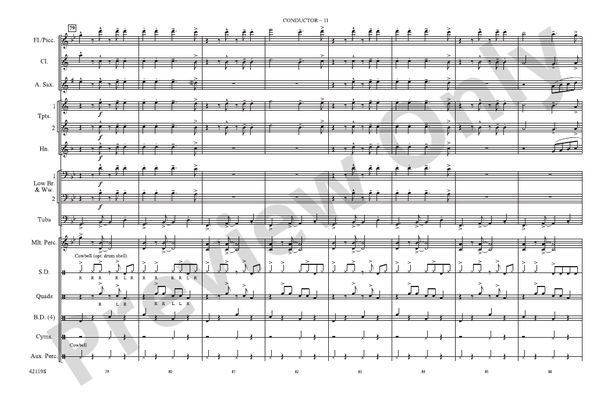 This catchy Latin theme for the dance-fitness craze of the same name makes a terrific marching band chart, especially in the capable hands of arranger Victor López. They will literally be dancing in the aisles with this one! (1:40)